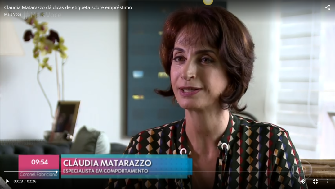 Clipping e Portfólio Emprestar ou pedir emprestado – Vejam as dicas no Mais Você Postado em 05/08/2019 emprestar 0 Comentários De Claudia Matarazzo Claudia Matarazzo Jornalista e Especialista em etiqueta e comportamento. Viaja por todo o Brasil, ministrando palestras e workshops na área do comportamento. Autora de 18 livros sobre comportamento, moda e inclusão social, ganhou o Premio Abril de Jornalismo. VOCÊ TAMBÉM PODE GOSTAR Dudu Nobre e sua ala de sambista. 03/01/2015 Palestra – Estilo e Moda – Visual Feminino 08/10/2014 TV Gazeta – Programa Mulheres – Entrevista de Emprego 12/08/2017 Sem comentários Deixe um comentário Cancelar respostaNome * E-mail * Site Salvar meus dados neste navegador para a próxima vez que eu comentar.