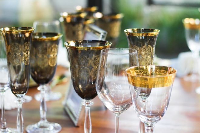 Veja as taças acima: com diferentes tons de bronze e dourado, e diferentes estampas. Elas “conversam” entre si, dano um toque de requinte – por mais singela e simples que seja a porcelana e a toalha. Nesse caso, o dourado (tendência em mesas do mundo todo), dispensa maiores detalhes em acessórios.