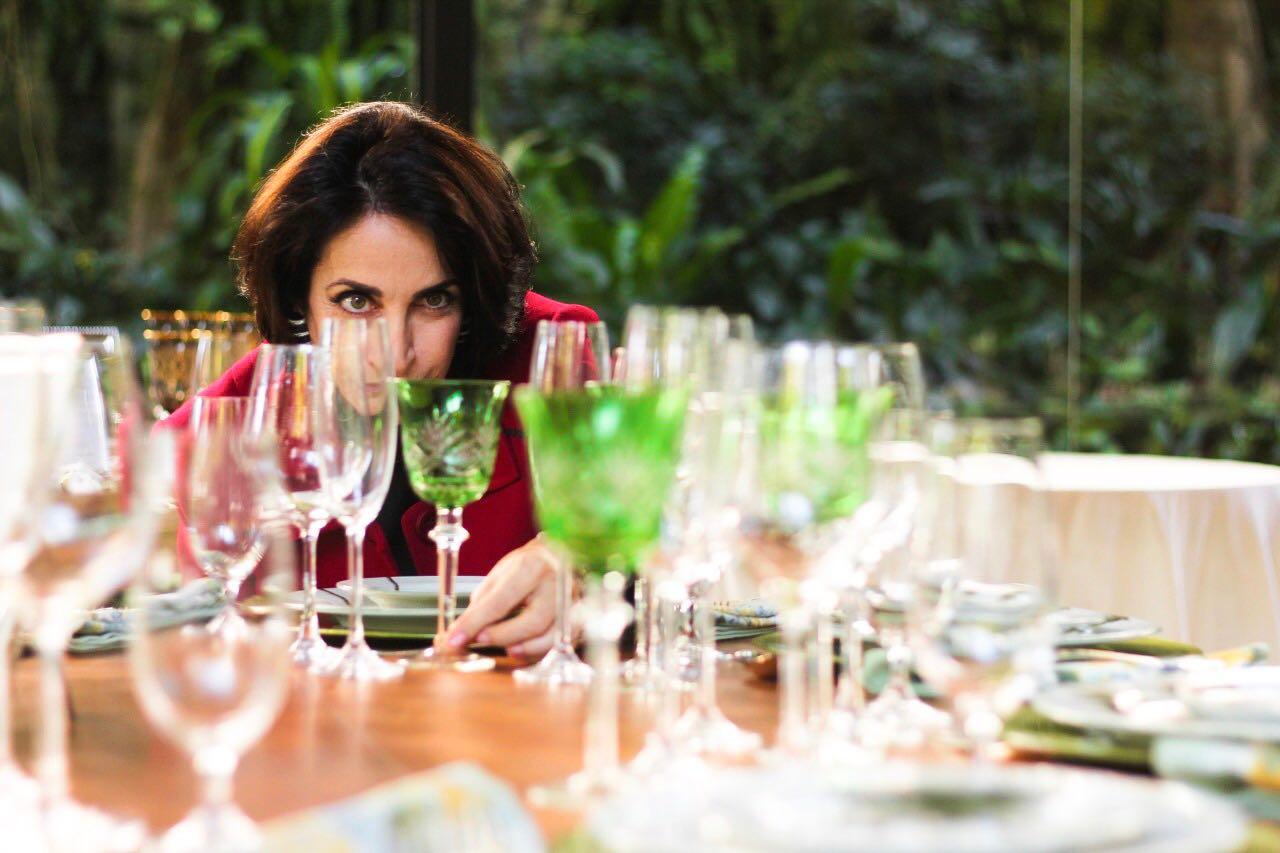 Acima, na produção de uma das mesas de nosso evento Wedding Experience, que aconteceu em maio na sede do Iate Clube de Santos, em Higienópolis, vejam como é perfeitamente possível misturar taças de cristal lapidado com outras lisas, mais apropriadas para se tomar vinho – e o resultado é esse toque verde super moderno, emprestando cor ao conjunto.