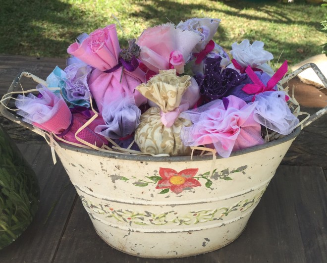 Para fazer: borrife o álcool no sagú – o suficiente para que ele incorpore o perfume – e, em seguida misture a lavanda em quantidades iguais. Espere secar um pouco e embrulhe no tecido, amarrando com a fita da cor de sua preferência.
