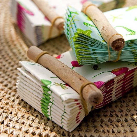 Escolha guardanapos decorados, maiores do que os do tipo “lanchonete”, que podem ser usados nos jantares íntimos sem o risco de comprometer a beleza da mesa. Faça variações com as cores e estampas mas tome sempre o cuidado para que combinem e fiquem harmoniosas e delicadas.