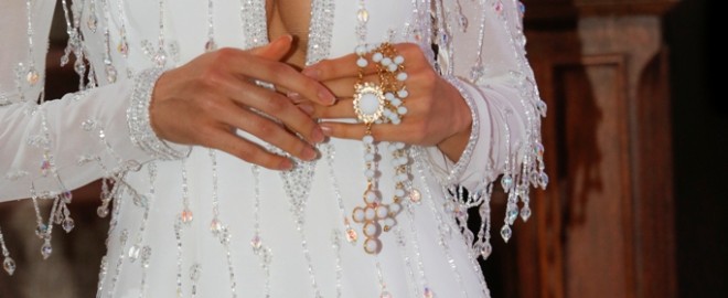 Nada tenho contra flores – mas de verdade, um buquê mais atrapalha que ajuda para compor com o vestido e reparem na beleza dos cristais da foto acima e na elegância das pérolas de resina abaixo… Dá outro porte a qualquer noiva!