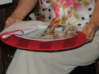 Pode ser, desde uma ceia requintada como essa da foto acima – com muito dourado e vermelho para remeter ao Natal e a prosperidade como faziam os antigos – até um jantar americano onde cada um se serve e senta-se com esse apoio de prato, com motivo de Natalino, super prático e confortável.