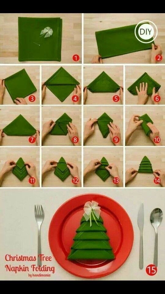 Olha que máximo o passo a passo para transformar o guardanapo em uma árvore de natal.