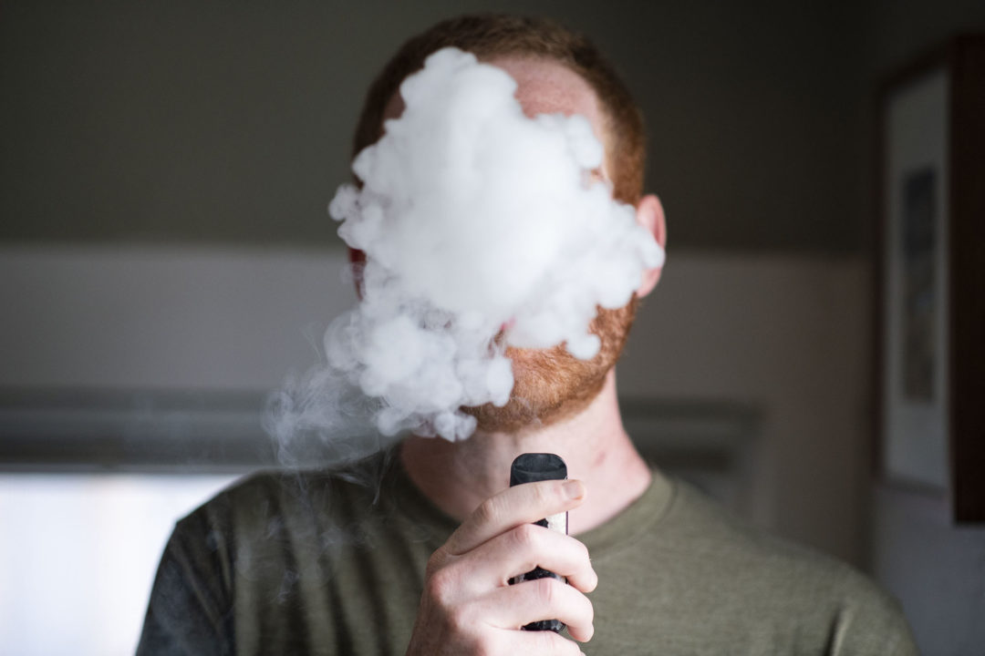O cigarro eletrônico contém pelo menos 80 substâncias químicas, entre elas, a nicotina, que causa dependência, além propilenoglicol e glicerina vegetal, que produzem acetaldeído, substância associada ao reforço do poder de dependência da nicotina.