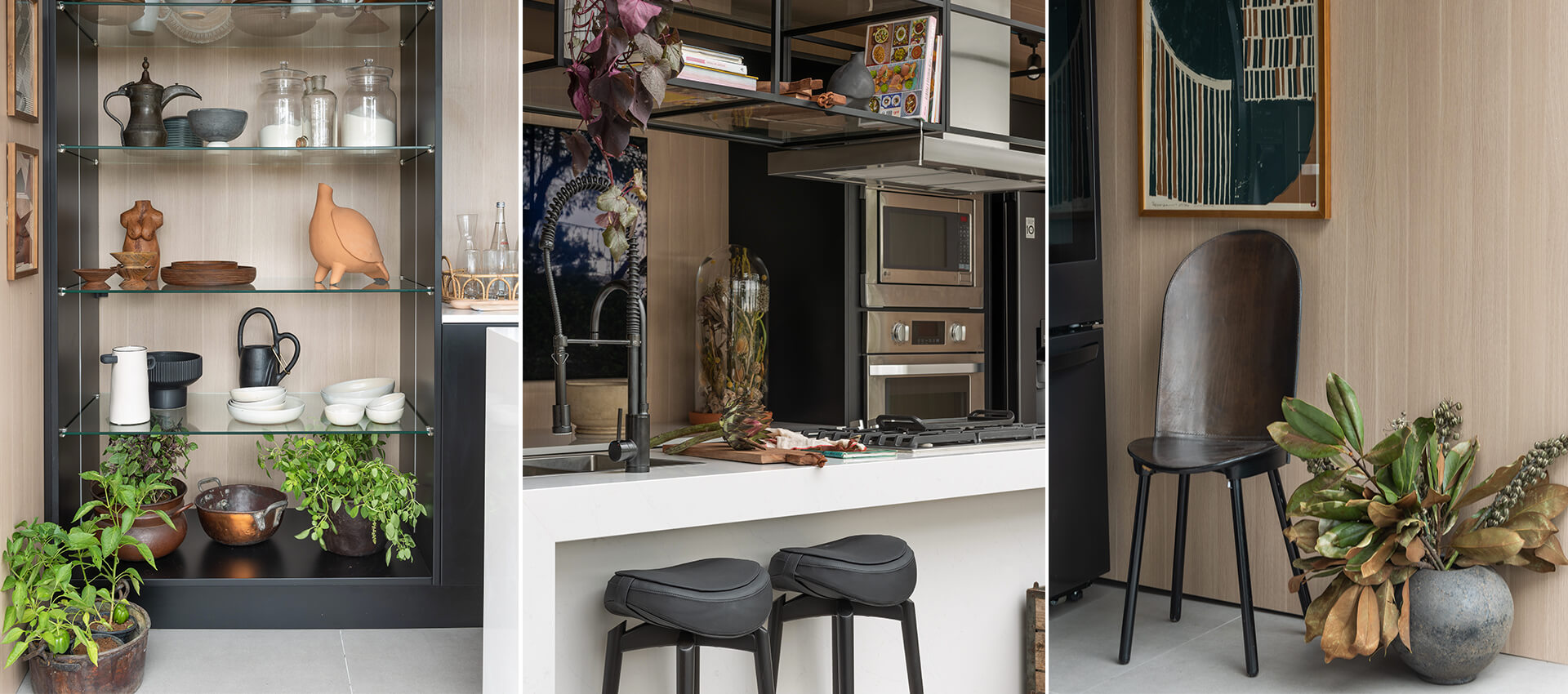 Tempero da Vida (Érica Salgueiro) – o coração da casa. Sim, a cozinha!!! A tecnologia faz contraponto com os elementos naturais, da horta caseira aos objetos de cerâmica. Está localizada na entrada principal do Shopping Anália Franco.