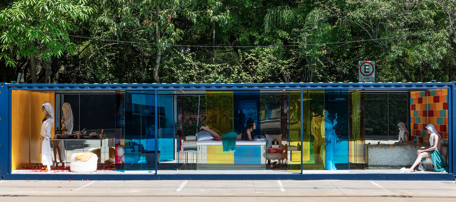 Banho de Luz Espaço Deca (Arquiteto Sig Bergamin) – banheiro é um caleidoscópio que ameniza o cinza de São Paulo. Com painéis de vidro colorido e revestido com espelho. Encontra-se na Praça Adolpho Bloch, no Jardim Paulista.