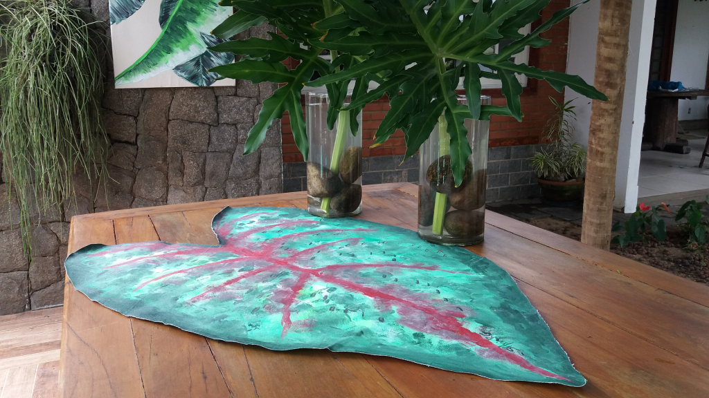 Nem toalha nem jogo americano: a proposta da artista plástica Silvia Granatto é simplificar e embelezar com telas de mesa: ou seja, com um caminho gigante como esse é possível vestir a mesa usando-o com a dupla função de apoio de travessa e decoração.…
