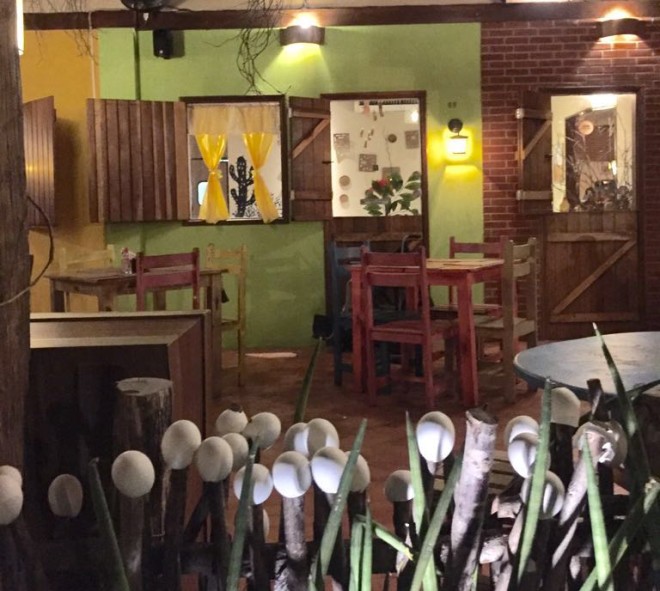 E porque não? Nessa foto o arranjo é na entrada do tradicional – e ótimo – restaurante regional de Recife, o Parraxaxá. Mas você pode fazer isso em sua casa e funciona até mesmo para um centro de mesa…
