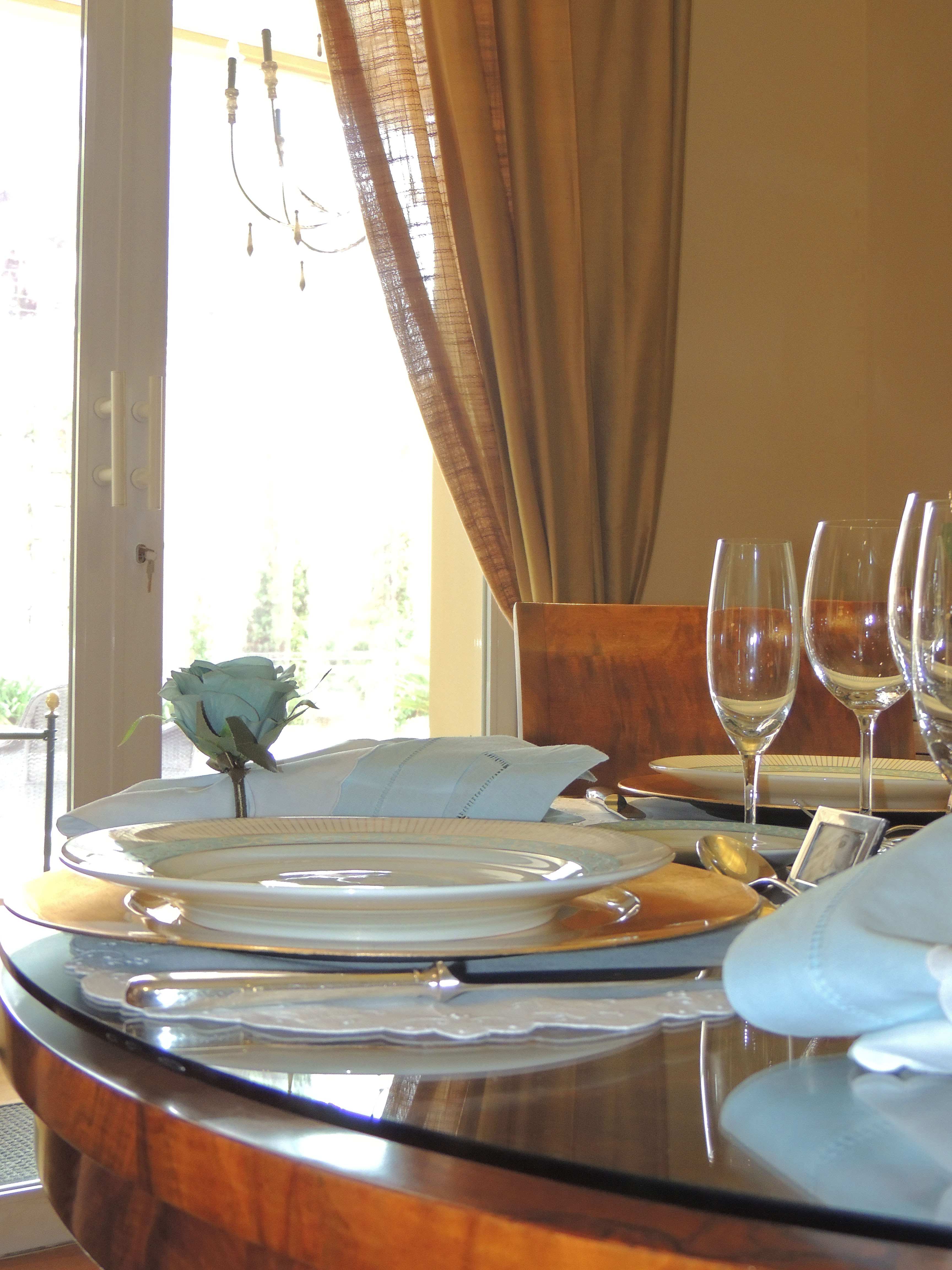 Já no caso da foto acima, o guardanapo não é duplo e a mesa está igualmente caprichada – e muito mais confortável e elegante, sem exageros. Em tempo: a foto é do blog da querida Anfitriã, autora de postagens duma mais bonita que a outra…