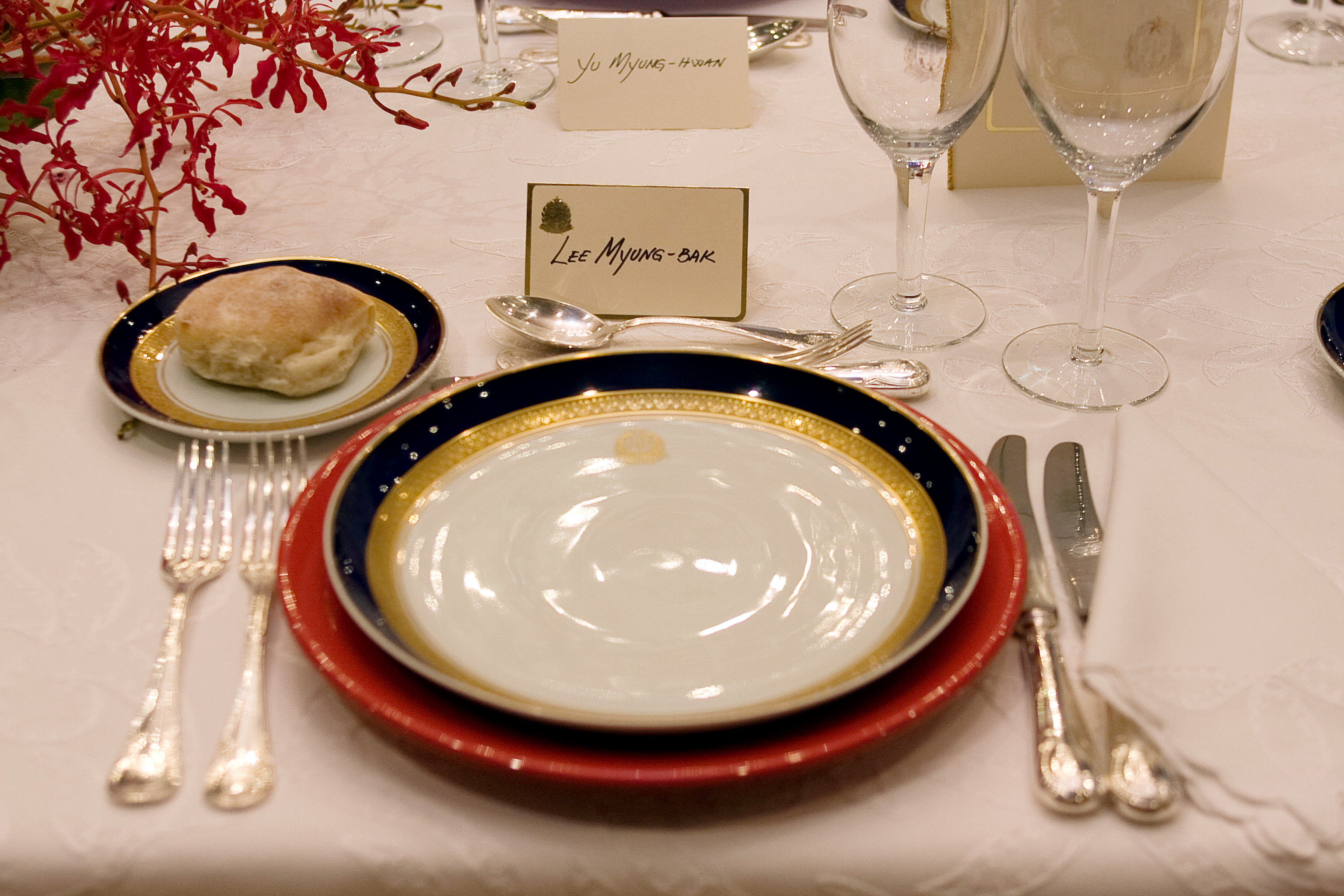 Finalmente, relaxe e lembre que em uma mesa com um lugar assim colocado haverá um serviço a altura: com garçons e copeiras retirando os pratos usados, e servindo a comida e bebida conforme a necessidade.