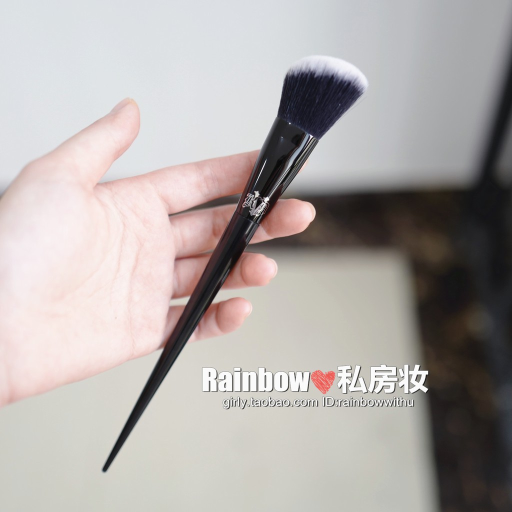 Blush – com cerdas grandes e chanfradas, esse pincel deve ser utilizado para aplicar blush em movimento diagonal. O seu formato facilita também o contorno do rosto nas laterais, causando um leve efeito degrade ao esfumar. Uma dica de expert: retire o excesso do produto com um sopro ou nas costas das mãos para não deixar as bochechas marcadas e não ficar com um aspecto de “palhacinha”, que ninguém merece