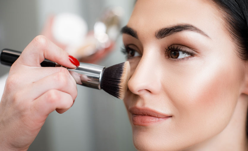 Pó Facial – o pincel deve ser fofinho, com muitas cerdas e de formato arredondado. Ele é ideal, pois dá a cobertura uniforme às áreas maiores do rosto. Para aplicar é preciso desenhar o formato do rosto e tomar cuidado na quantidade de pó aplicada, para não ficar sobrecarregado.