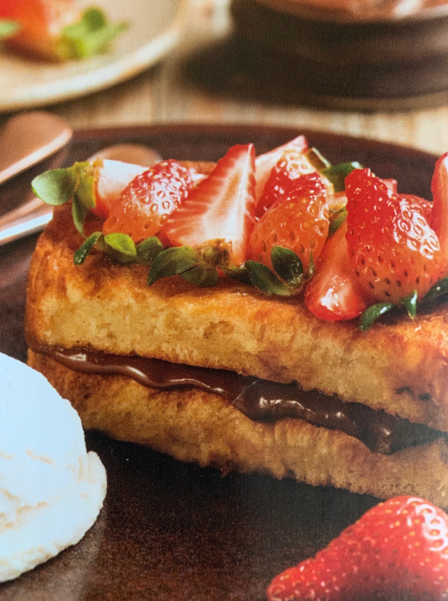 Rabanada com morangos – e sorvete ainda por cima! O que mais combina é o sorvete de creme, mas a escolha é sua! Faça uma espécie de “sanduíche” com duas fatias de rabanada, recheie com Nutella ou outra calda de chocolate da sua preferência
