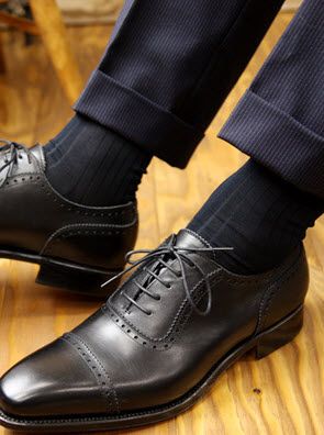 Sapatos – dois pares bastam! – nada o impede de ter muitos pares de sapatos, porém se quiser, apenas dois pares dão conta do recado: um preto (para usar com ternos marinho, cinzas, grafites, e todos esses  tons) e um par marrom (para ternos da mesma cor ou havana, verde escuro, cáqui, mostarda etc). Eventualmente um par em tom vinho, mais esportivo.