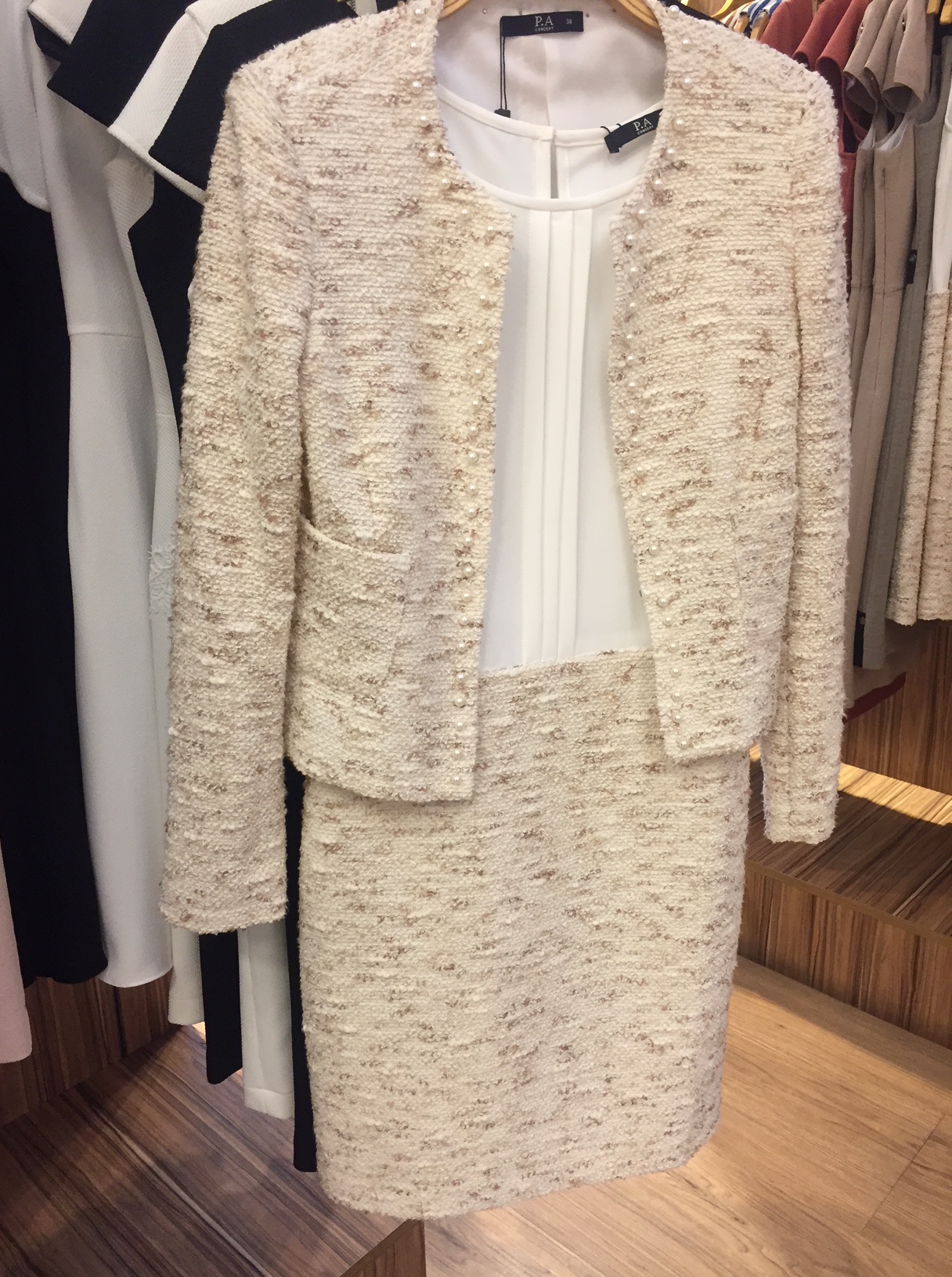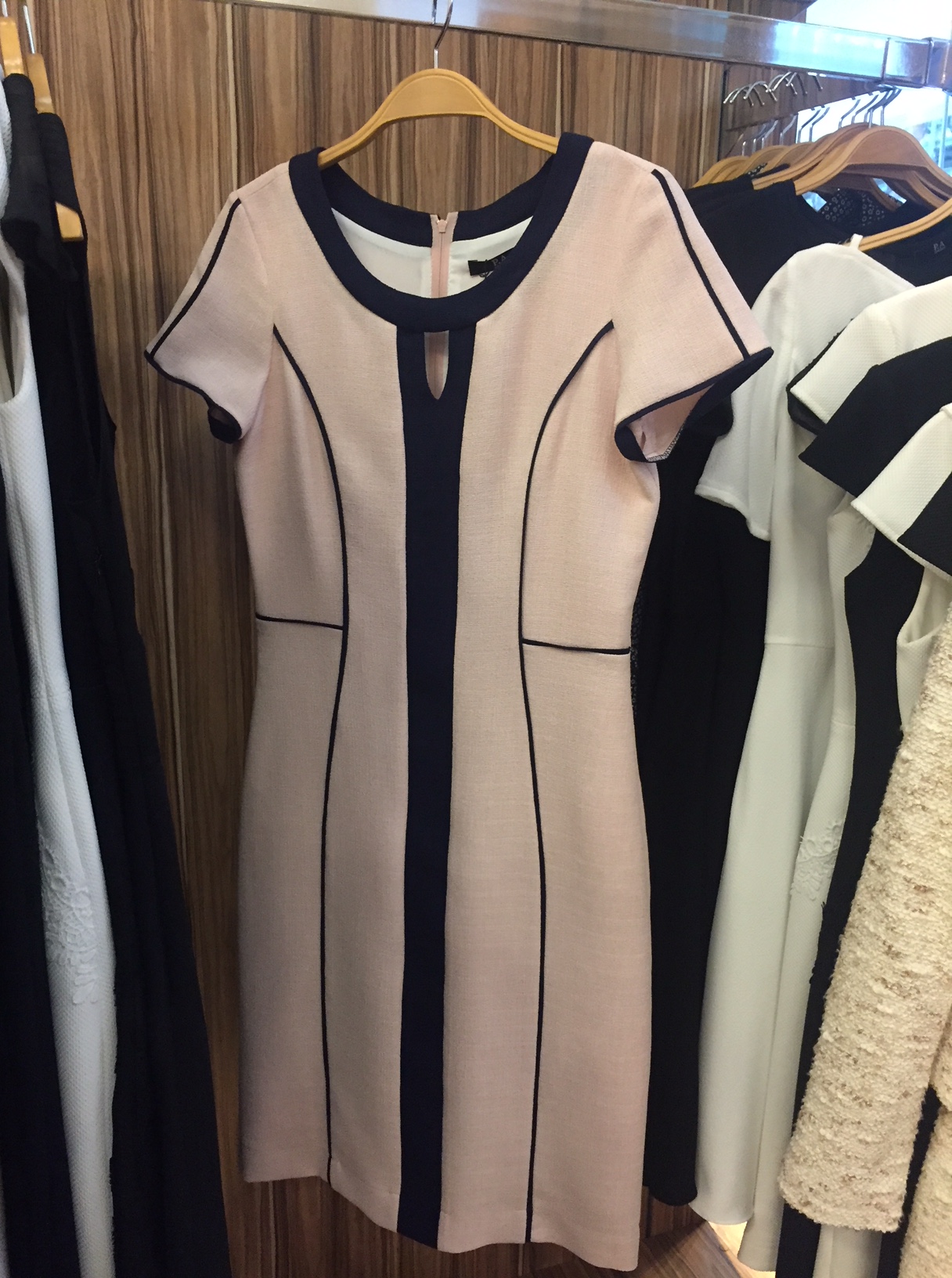 Acima dois modelos para eventos mais sociais. Adoro o da esquerda porque é versátil, e permite que se coloque e tire o casaquinho  conforme o clima. A parte de cima do vestido e em tecido leve e lavável e o tom em creme, super elegante iluminando e valorizando pele e olhos de todas as cores. O tom de cor de rosa da direita é super feminino mas o corte reto e a combinação com o preto dá a ele uma sobriedade leve. Sem falar que as mangas são no ponto para não esquentar e deixar os ombros discretamente cobertos…